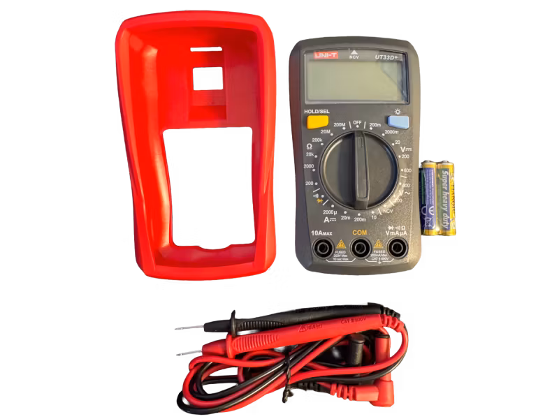 UNI-T Digital Multimeter är en pålitlig och användarvänlig multimeter för mätning av spänning, ström och resistans. Den är utrustad med tydlig LCD-display, data hold-funktion och automatisk avstängning för ökad batteritid. Perfekt för både hobbyanvändare, studenter och servicearbeten inom el och elektronik. Robust design och enkel hantering gör den till ett utmärkt val för dagligt bruk.