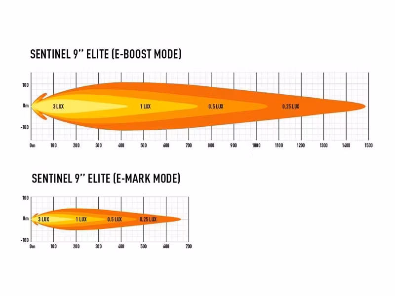 - Luxvärde: 1483m (0,25 lux) med E-Boost | 663m (0,25 lux) utan E-Boost